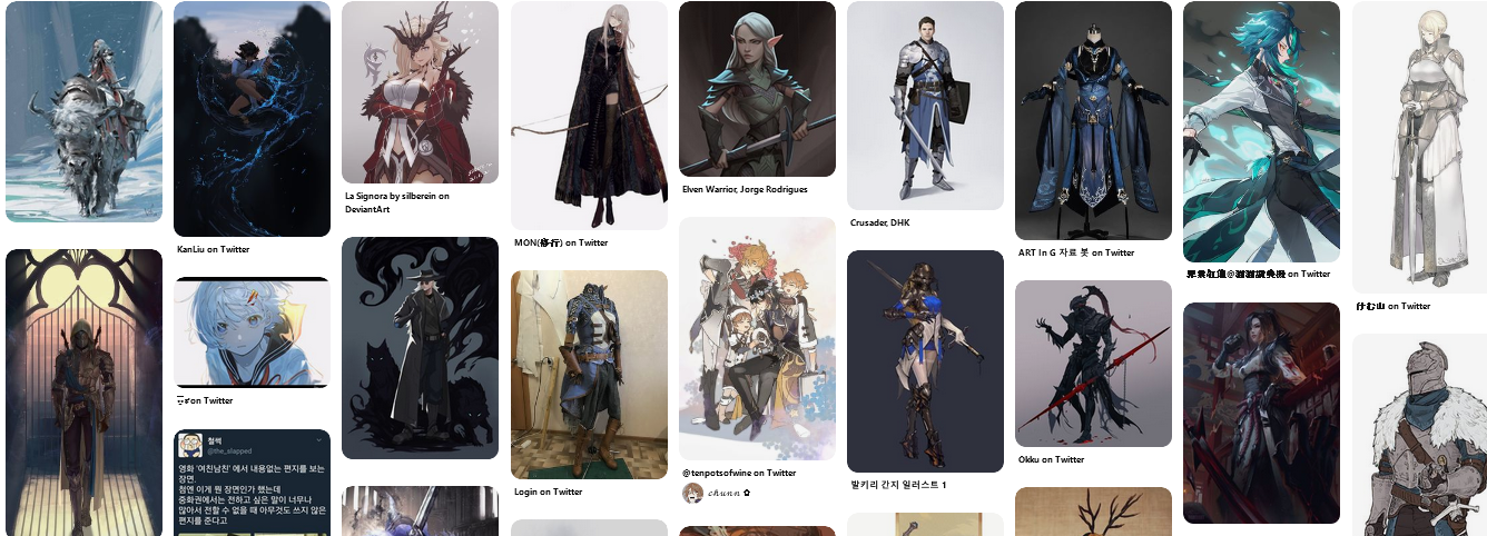 *판타지,애니,갑옷,마법사 등이나 그림체 , 분위기 등도 나뉩니다.