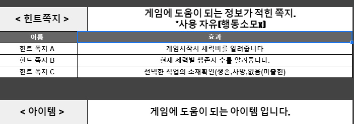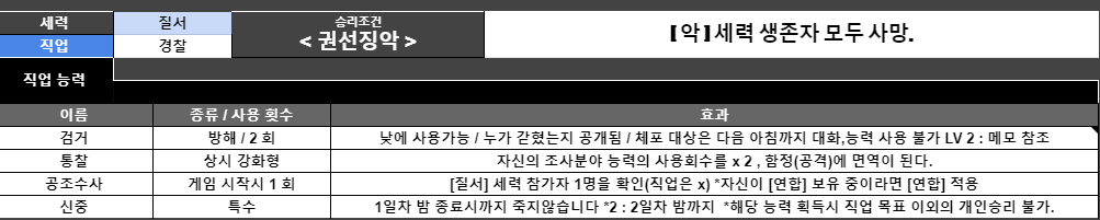 *직업마다 승리 조건이 존재하며 , 능력선택에 따라 승리조건이 추가가능합니다.