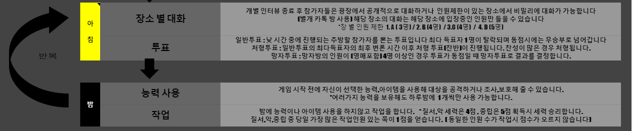 마피아 시스템에 RP요소와 선택지를 더해 만들어진 룰로