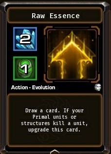 로우 에센스 카드입니다. , 기존 능력은 카드 1장을 뽑는 기능이지만 내 원시(프라이멀) 유닛이 적 유닛을 잡으면
