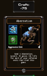 변형체 : 공격적 유닛(상대 라인까지 돌격) 이 카드 사용시 죽은 내 감염된 유닛x10 만큼 추가 체력을 얻습니다