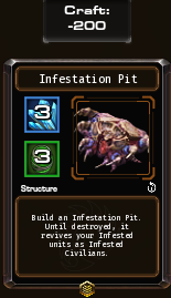 60체력 , 넓은 범위의 35 피해를 주는 자폭유닛, 저글링을 엄청 잘 잡으니 자가라에 애용하자, 다만 감염된 유닛들은 이동속도가 엄청 느려서 원거리 유닛 몇 쌓이면 기어가다 죽어서 후반엔 힘이 떨어지는 감염구덩이 용.