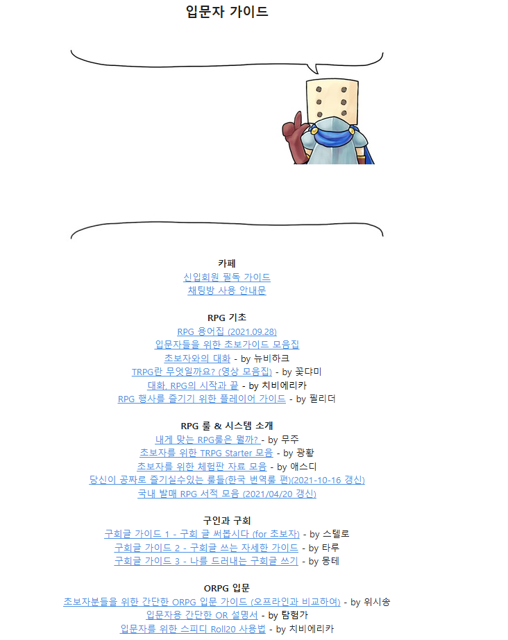 + 네이버 TRPG 카페에서는 여러 팁들이 있으니