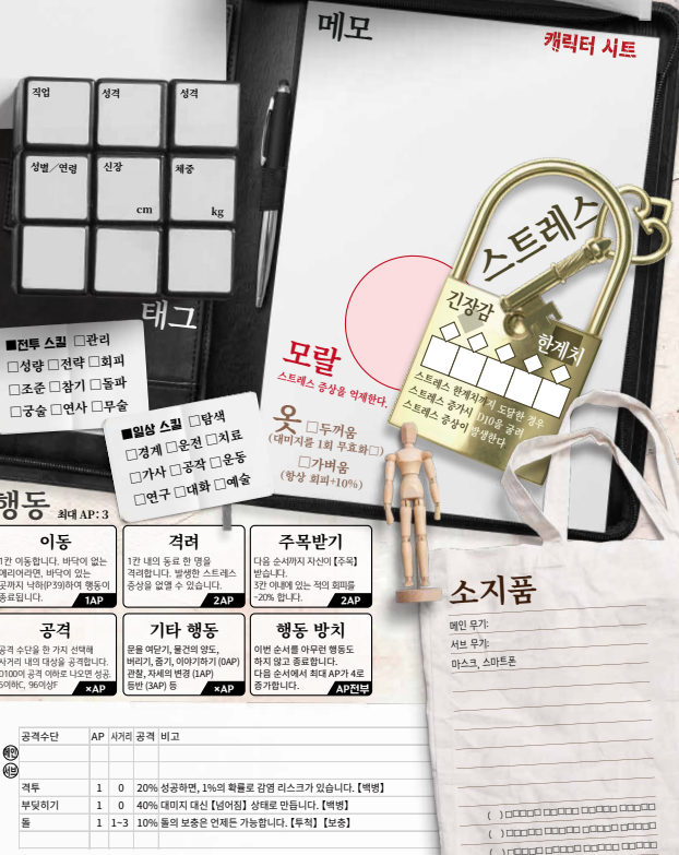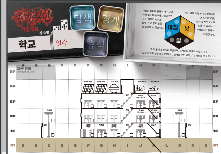 세계관은 좀비 아포칼립스 배경에서 거점을 만들고 방어하는 룰.