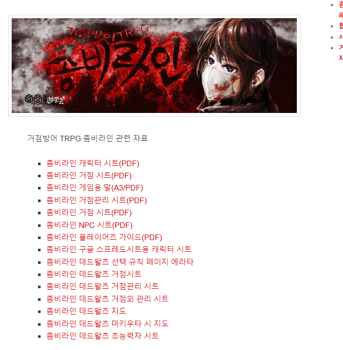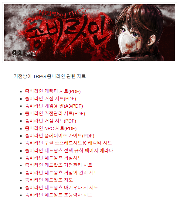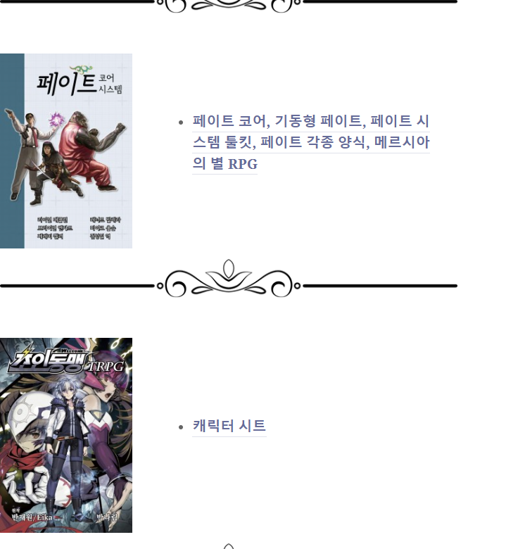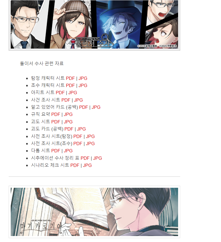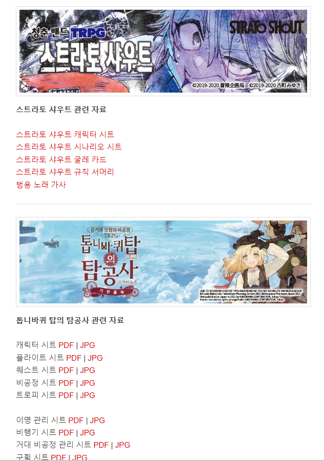 이 외에 TRPG 룰 출판사들에서 관련 자료를 제공해줍니다.