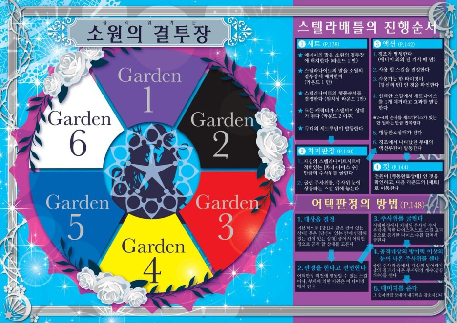 전투는 '소원의 결투장'이라는 특별한 공간에서 진행되며, 플레이어들은 자신이 선택한 색과 꽃에 따라 특별한 스킬을 사용할 수 있습니다.